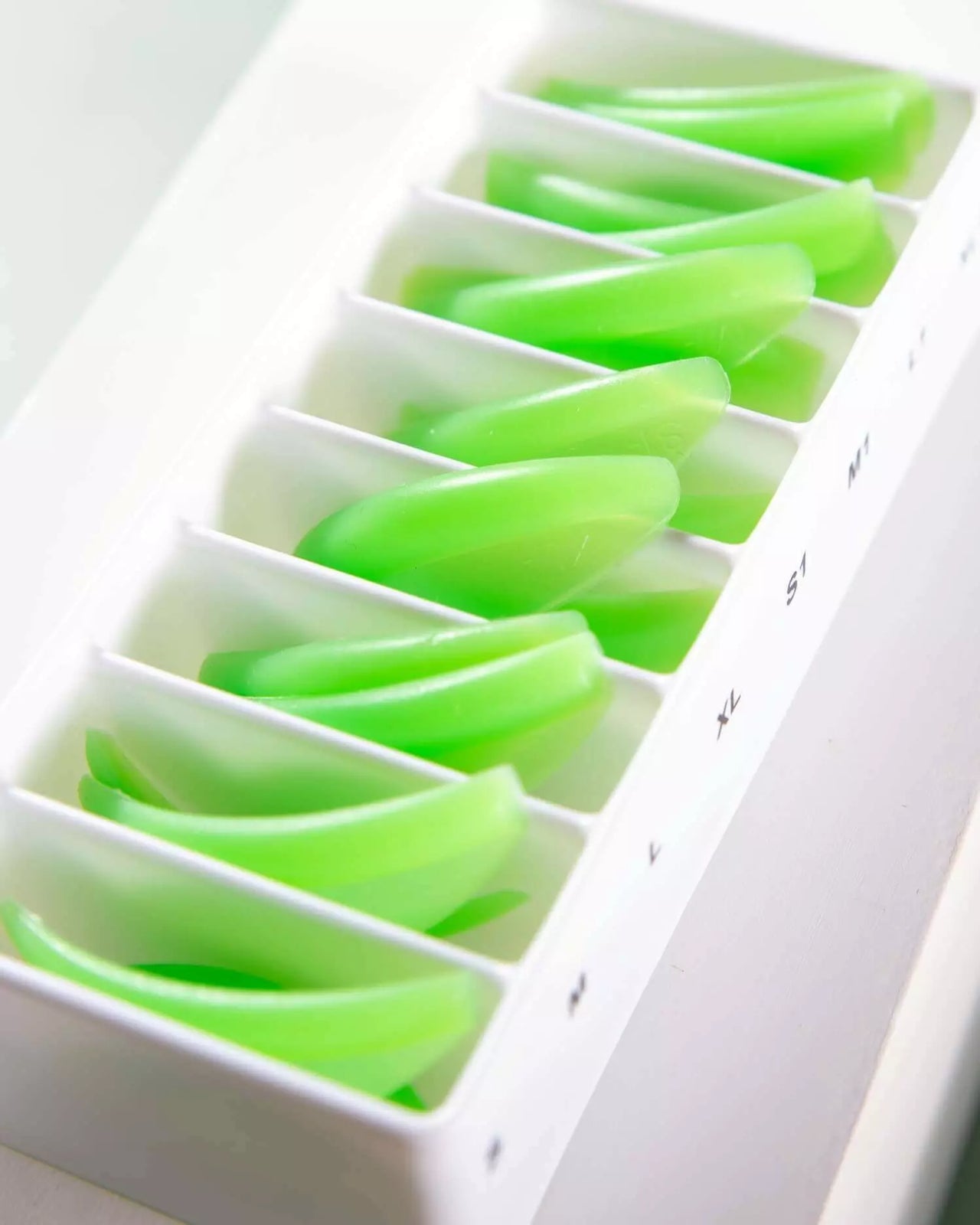 Soft and lightweight silicone pads are perfect for achieving beautiful lash curls. They are securely attached to the eyelids with a special gel, and lashes are carefully placed onto the pads using an applicator. After the procedure, excess gel can be easily removed with a cotton swab moistened with water.